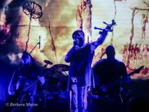 Um vídeo mostrando vários momentos de sua história deixa a atmosfera sombria para “Malum”, faixa de Daemon (2019), iniciar o massacre sonoro seguida por “Bad Blood”.