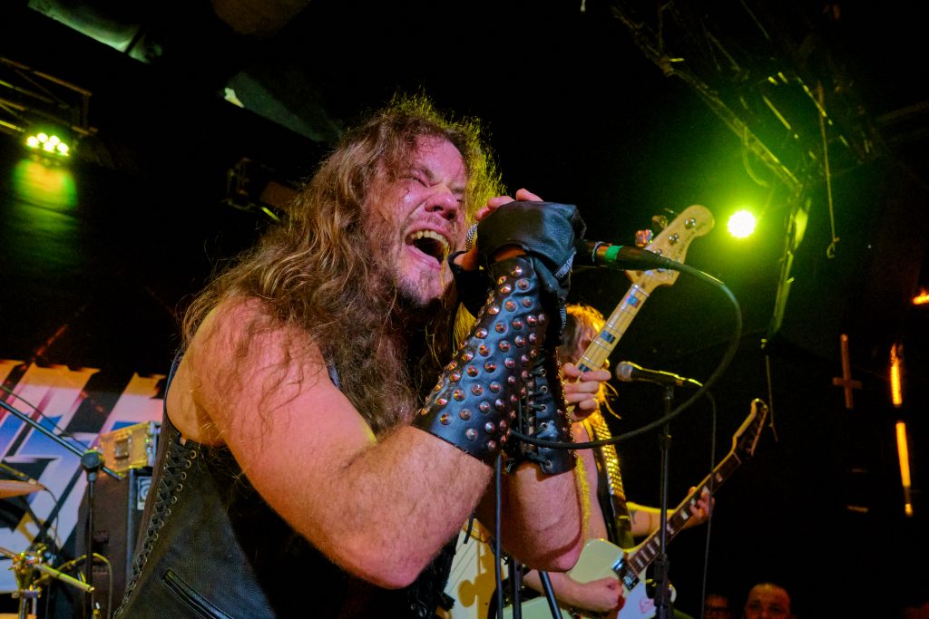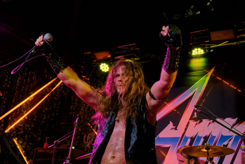 Entre os pontos altos da apresentação, destacou-se a performance incendiária do vocalista Marc Hellway, que não parou um segundo sequer no palco — pulando, gesticulando e incendiando o público com sua energia contagiante. Além da entrega física, Marc demonstrou grande sintonia com os fãs, reafirmando entre uma música e outra que “o heavy metal não morreu e continuará vivo como forma de resistência ao fascismo e ao conservadorismo”.
