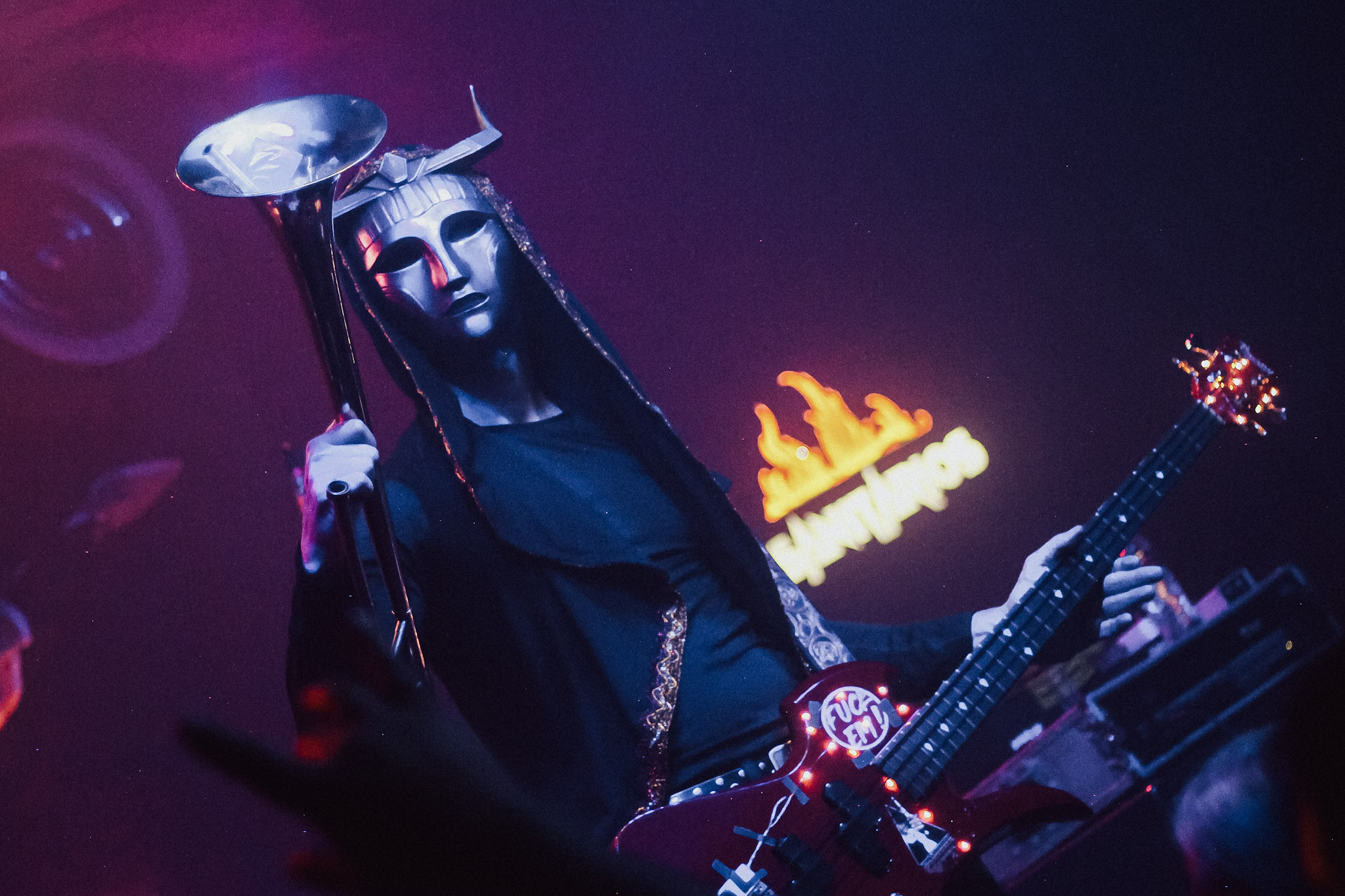 Ao vivo, músicas como Chernobyl Blues e Hotel Sphinx ganham uma dimensão ainda mais teatral, reforçando o caráter cinematográfico que atravessa toda a estética do Imperial Triumphant. Nada ali soa improvisado ou gratuito. Cada movimento, cada camada sonora e cada silêncio parecem fazer parte de uma narrativa maior. Industry of Misery e Swarming Opulence encerraram o set consolidando a sensação de um caos cuidadosamente arquitetado, potencializado pelos elementos visuais da turnê, como o espumante jogado na galera e a já conhecida aparição do trompete em chamas, recurso que reforça o impacto visual e dialoga com o imaginário grandioso e decadente da banda. Foi um show intenso, técnico e absolutamente convincente, que justificou todas as expectativas em torno dessa estreia brasileira.