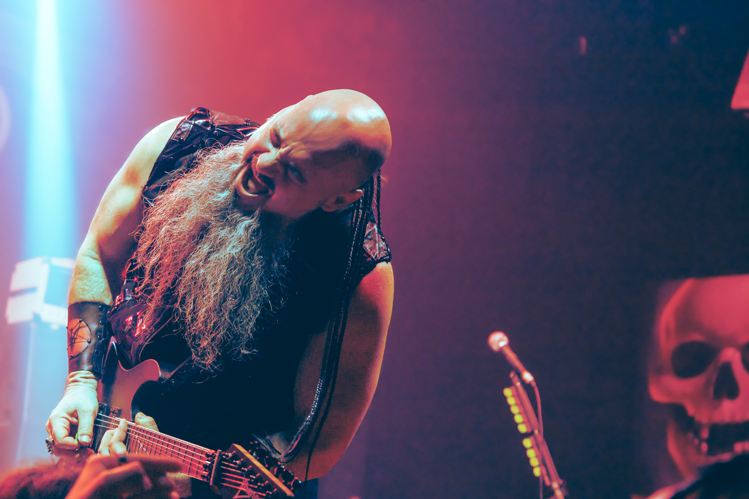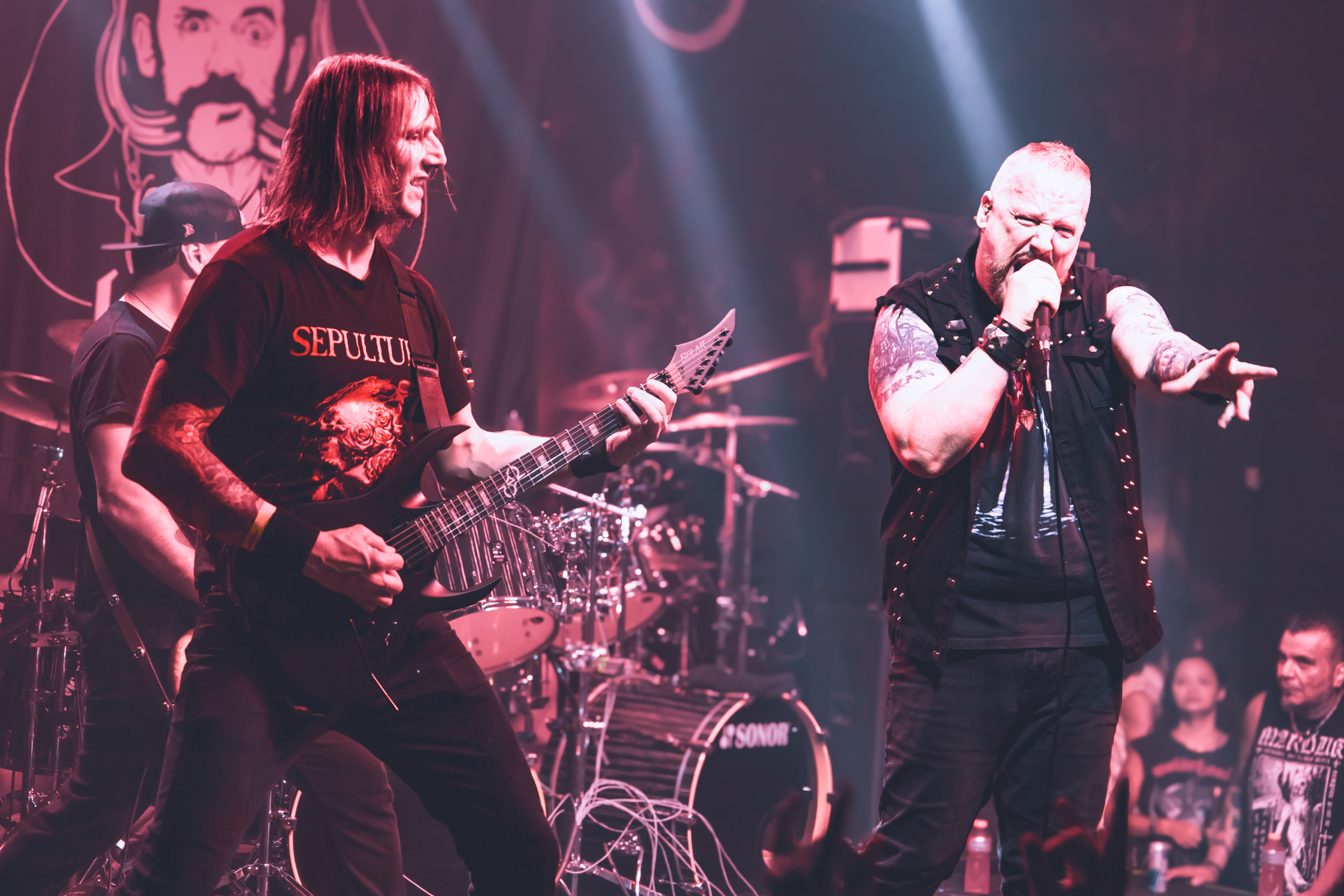 O Vio-Lence entregou uma apresentação marcada por velocidade, peso e precisão, resgatando a essência do thrash oitentista com uma execução afiada e visceral. A resposta do público foi imediata: rodas se abriram, cabeças balançavam em uníssono e a pista se transformou em um verdadeiro campo de batalha sonora.O repertório passeou por momentos emblemáticos da carreira, com destaque absoluto para as faixas do clássico “Eternal Nightmare”, além de músicas mais recentes que mostraram que a banda segue relevante e agressiva mesmo décadas após sua formação. Cada canção soava como um ataque direto, sem pausas longas ou discursos desnecessários — apenas thrash metal em seu estado mais puro.Um dos momentos mais simbólicos do show foi a presença de uma bandeira do Brasil estilizada com a capa de Eternal Nightmare. Ostentada com orgulho pela banda durante a apresentação, a bandeira não foi tratada como mero adereço. Ao final, foi cuidadosamente dobrada e guardada no bolso de Sean — um gesto simples, porém significativo, que evidenciou o respeito e a atenção da banda com o público brasileiro.