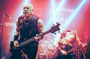 Os clássicos não ficaram de fora e surgiram como verdadeiros hinos: “War”, “Inferno”, “Countess Bathory”e “Black Metal” ecoaram com força máxima, provocando uma resposta imediata da plateia. Cada música era recebida com entusiasmo, punhos erguidos e uma atmosfera carregada de energia e reverência. (inclusive por essa quem vos fala!)