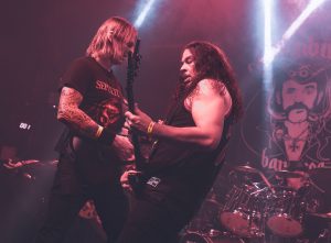 A apresentação foi irretocável, marcada não apenas pela execução afiada, mas também” pela interação constante com o público. Palhetas foram distribuídas diretamente das mãos da banda, brindes foram feitos com a plateia e o clima era de celebração total! Um dos momentos mais emblemáticos da tarde veio quando Tony Dolan, diretamente do palco, compartilhou uma garrafa de Jack Daniel’s, que passou de mão em mão na pista. O gesto simbólico serviu como combustível perfeito para uma das performances mais explosivas e incendiárias de todo o festival, selando o show do VENOM INC. como um dos grandes destaques do Dark Dimensions Fest II.