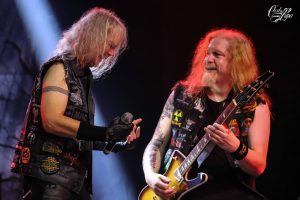 O show foi uma verdadeira peregrinação por décadas de heavy metal, equilibrando clássicos absolutos e faixas que reafirmam o vigor criativo da banda. Twilight of the Gods abriu os trabalhos com imponência, seguida pelo desfile de hinos que marcaram gerações: The Grave Dancer, Kingdom of Skulls, Under My Flag, Valhalla e The Keeper of the Holy Grail incendiaram o público em ondas crescentes.