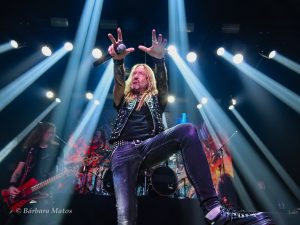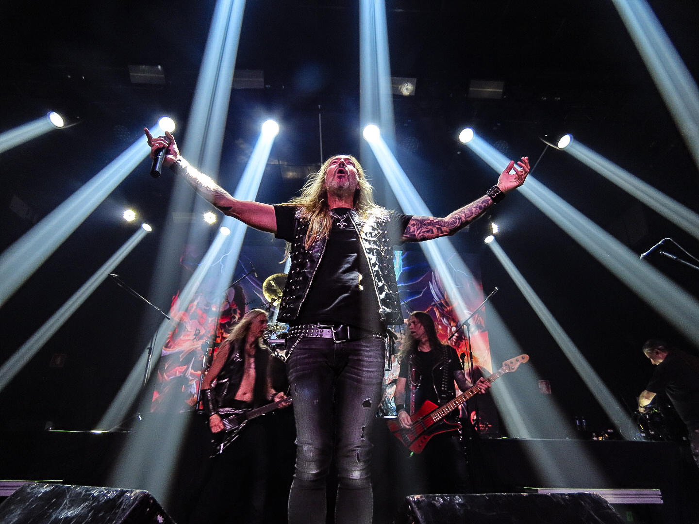 Por volta das 1h50, finalmente, o HammerFall surgiu — e a espera foi recompensada. A banda abriu com uma descarga de energia contagiante em Avenge The Fallen, seguida pelas clássicas Heeding The Call e Any Means Necessary. Em seguida, o carismático Joacim Cans saudou o público, explicou que Pontus Norgren e Fredrik Larsson haviam vindo literalmente do aeroporto direto para o palco, agradeceu pela paciência e reforçou: em 30 anos, nada jamais impediu o HammerFall — eles não cancelam shows.