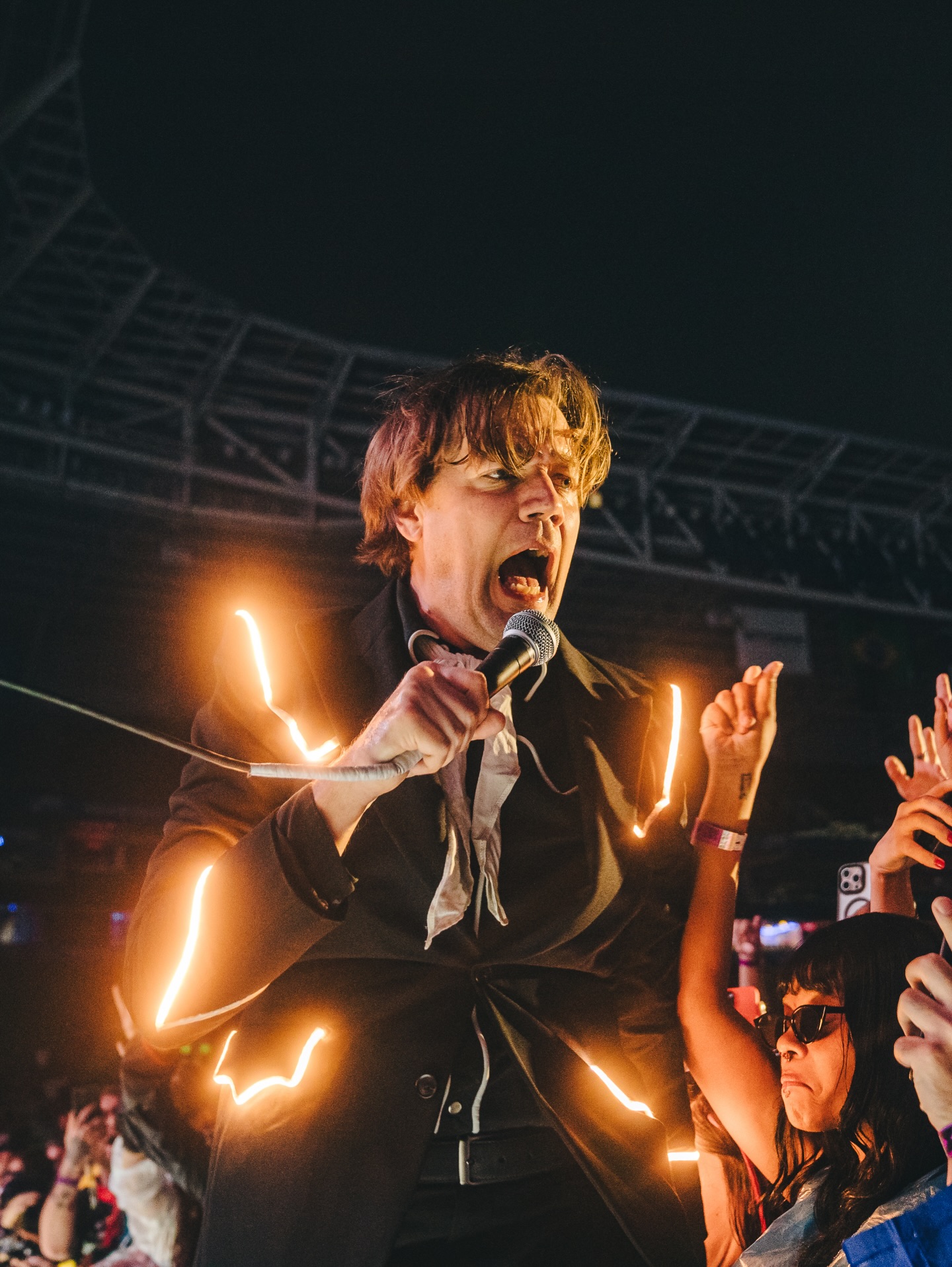 O aquecimento para a cerimônia emocional ficou a cargo dos suecos do The Hives. Pontualmente às 19h30, o quinteto subiu ao palco com uma energia que parecia pequena para os limites do estádio. Divulgando o trabalho The Hives Forever, a banda entregou uma performance marcada pela química explosiva entre os músicos e a plateia. O vocalista Pelle Almqvist, mestre na arte de comandar multidões, interagiu constantemente em português, transformando hits como “Walk Idiot Walk”, “Hate to Say I Told You So” e a visceral “Tick Tick Boom” em hinos de estádio. Para muitos que chegaram cedo, o vigor do “show mais contagiante do mundo” já teria valido o ingresso por si só.