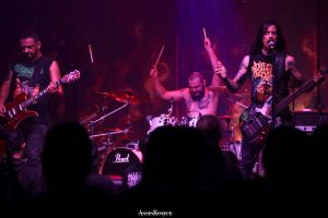 A noite começou com a energia crua e autêntica do Podridão, trio brazuca que há anos vem cultivando o death metal nacional com a dedicação de verdadeiros arqueólogos do extremo. Durante trinta minutos intensos, Repugnant Fat (bateria), Rotten Flesh (guitarras) e Putrid Dick (baixo e vocal) entregaram exatamente o que se espera de uma banda que carrega a podridão no nome: um som sujo, visceral e absolutamente comprometido com a essência mais primitiva do death metal.