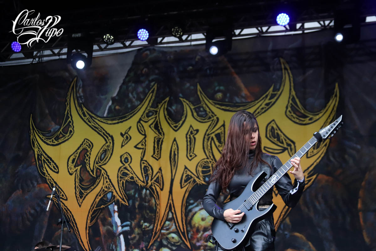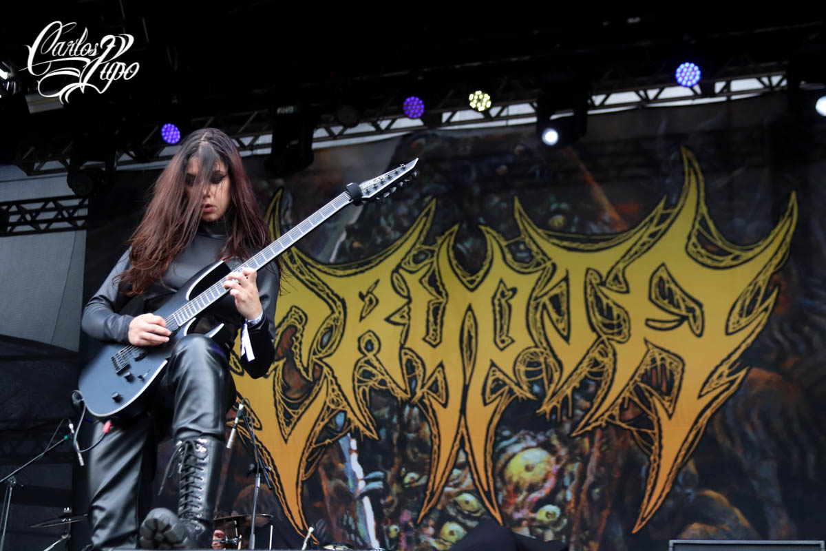 Uma rápida passada em um dos palcos principais, o Ice Stage, para conferir um pouco da performance dos ingleses do Benediction. O som das guitarras estava muito ruim e pouco podia ser compreendido, mas o bumbo duplo de Giovanni Durst, além da brutalidade que os caras impõem ao vivo, fizeram a diferença. De volta ao Sun Stage e quinze minutos antes de a Crypta subir ao palco, os fãs já disputavam a cotoveladas um lugar melhor para ver as meninas que, cumprindo o protocolo, entraram na hora programada. Infelizmente, a voz de Fernanda Lira não pôde ser ouvida nos primeiros versos de “Death Arcana”, a música que abriu o set, uma falha que as meninas não mereciam. Outras falhas no som aconteceram no decorrer do setlist, mas as meninas estão absurdamente entrosadas que nem isso prejudicou a apresentação delas. Hoje, a Crypta é a maior banda brasileira entre as que estão emergindo, para desespero dos haters.