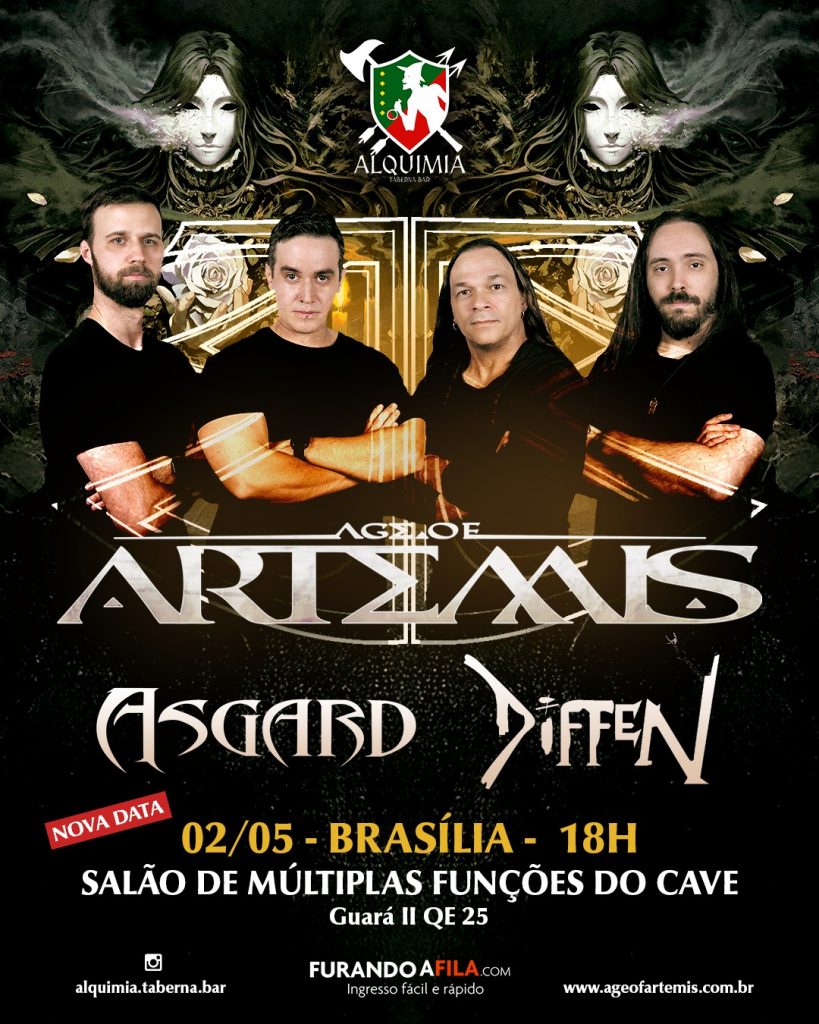 A Age of Artemis está de volta aos palcos para estrear sua nova formação. No dia 02 de Maio, a banda se apresenta junto com Asgard e Diffen no Alquimia Taberna Bar, em Brasília (DF).