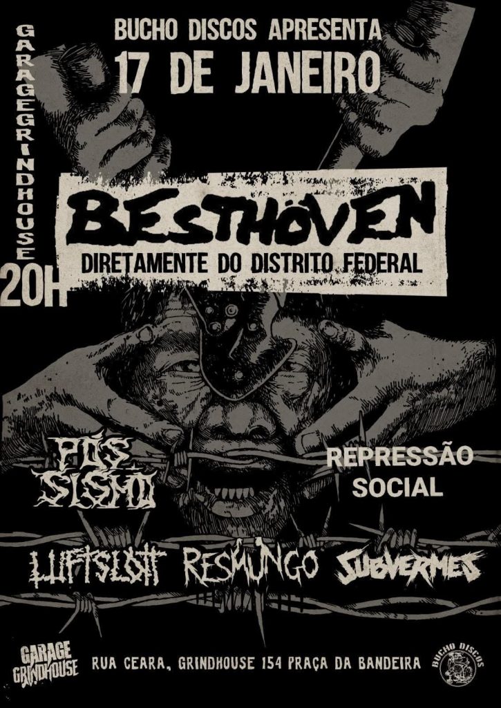 Fundado em 1990, no Gama, no Distrito Federal, o Besthöven é um dos nomes centrais das cenas crust punk e d-beat no Brasil. A banda tem uma discografia extensa, com lançamentos no país e no exterior, e presença consolidada no circuito underground internacional. O grupo é formado por Fofão, na guitarra e voz, Dulce, na bateria, e Carlos Squish, no baixo.