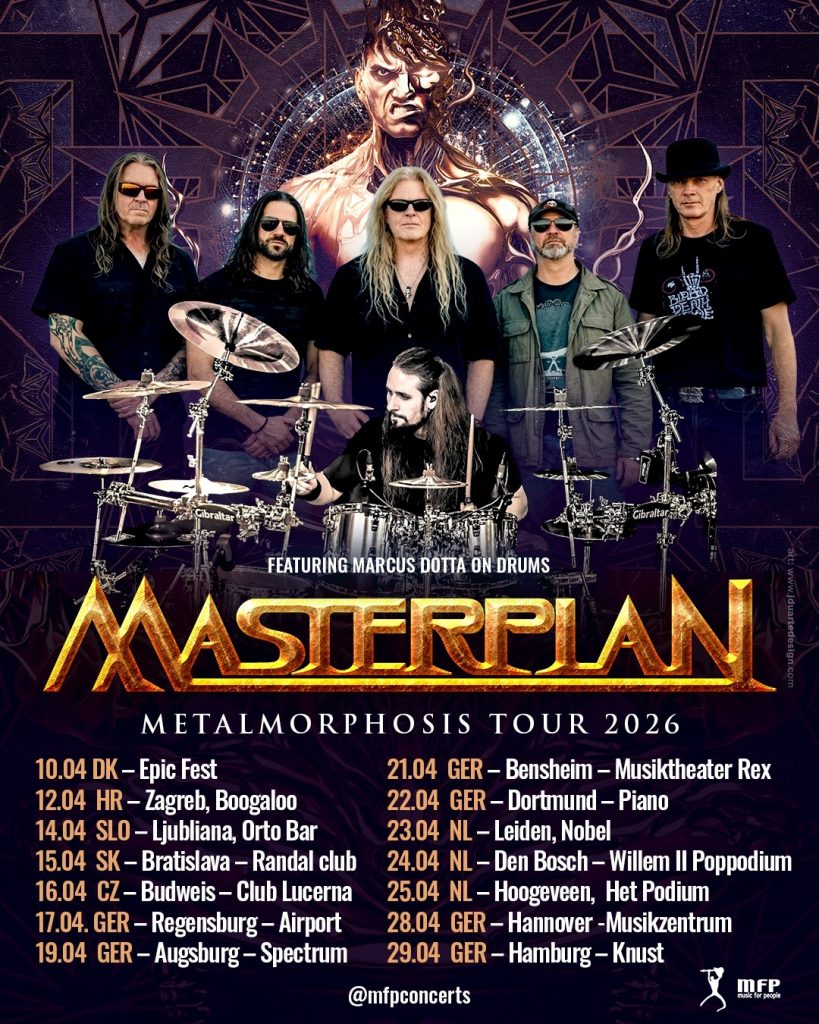 O baterista brasileiro Marcus Dotta (@marcus.dotta) será o músico à frente da bateria da banda de heavy metal alemã Masterplan na Metalmorphosis Tour 2026, série de 14 apresentações pela Europa entre os dias 10 e 29 de abril.