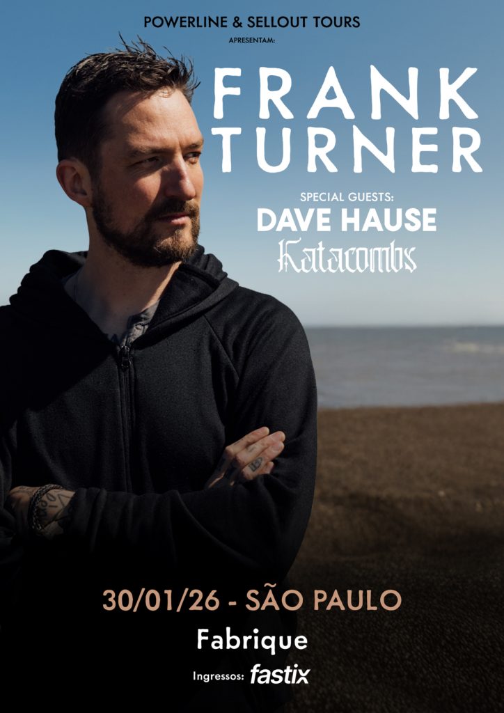 Responsável por cinco álbuns consecutivos no Top 10 das paradas oficiais do Reino Unido, Frank Turner anuncia a tão esperada turnê latino-americana para janeiro e fevereiro de 2026, com três shows no Brasil: São Paulo (30/1), Brasília (31/1) e Curitiba (1/2). A realização é da Powerline Music & Books junto à Sellout Tours.