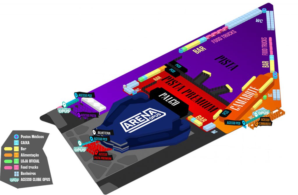 Todas as saídas de emergência, postos médicos, banheiros, bares e setores estarão amplamente sinalizados.