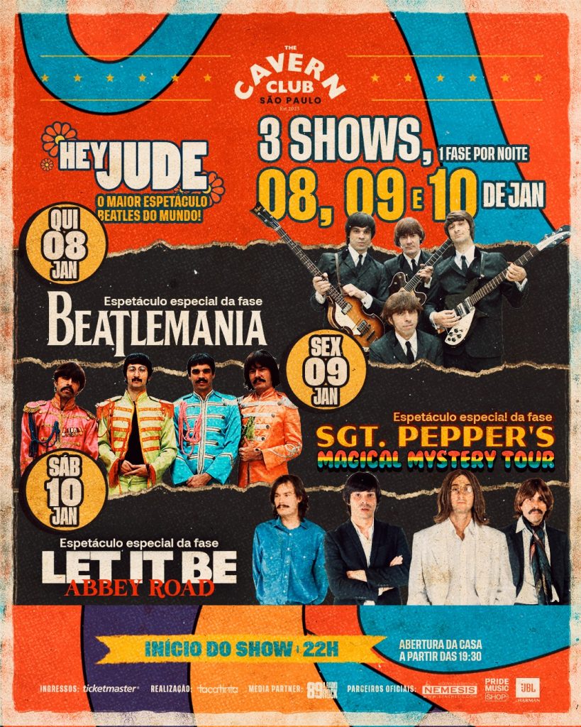 São Paulo recebe, nos dias 8, 9 e 10 de janeiro, um evento obrigatório para quem é fã dos Beatles. O Hey Jude, reconhecido como o maior espetáculo Beatles do mundo, ocupa o palco do Cavern Club São Paulo com três shows especiais, cada um dedicado a uma fase marcante da trajetória do quarteto de Liverpool, uma verdadeira imersão cronológica na história da banda mais influente de todos os tempos.