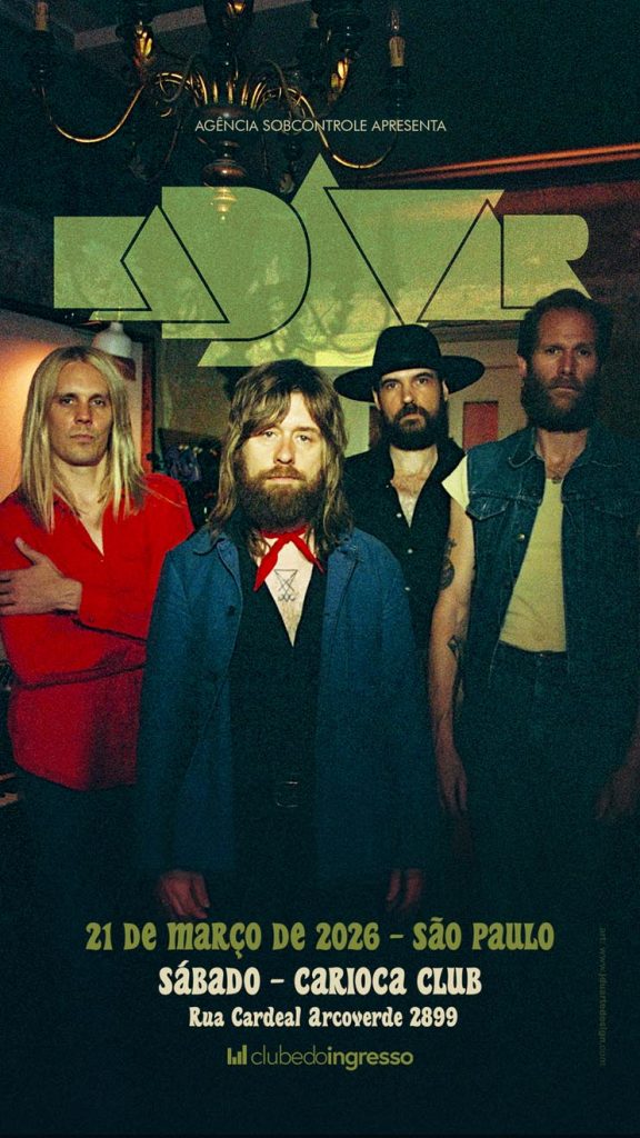 Março de 2026 acontece o tão esperado retorno ao Brasil da banda alemã de space/stoner rock Kadavar, o maior expoente mundial do estilo. Será show único no país, dia 21/03, um sábado, em São Paulo, no Carioca Club. A realização é da Agência Sobcontrole.
