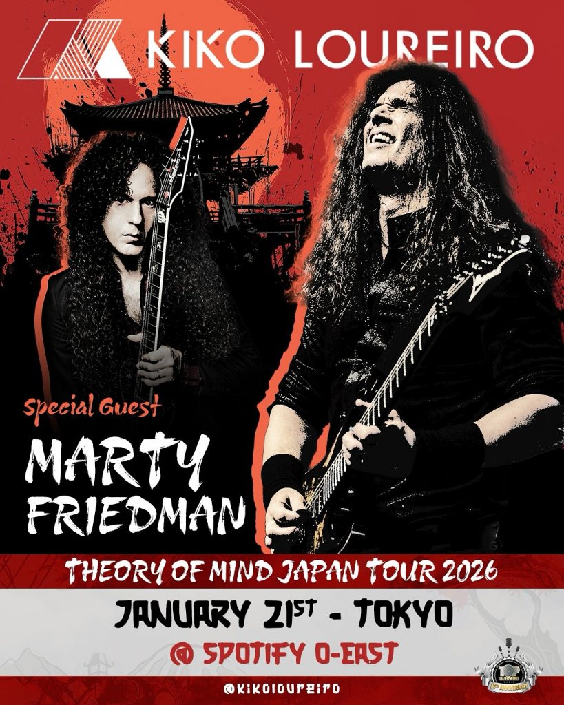 O guitarrista brasileiro Kiko Loureiro confirmou as datas de sua nova turnê pelo Japão: a Theory of Mind Japan Tour 2026. A série de três apresentações celebra o lançamento de seu mais recente álbum de estúdio, Theory of Mind, e promete momentos históricos para os fãs japoneses. A turnê passará por Osaka (19/01), Aichi (20/01) e terá seu grande encerramento em Tóquio (21/01), com a participação especial de Marty Friedman.