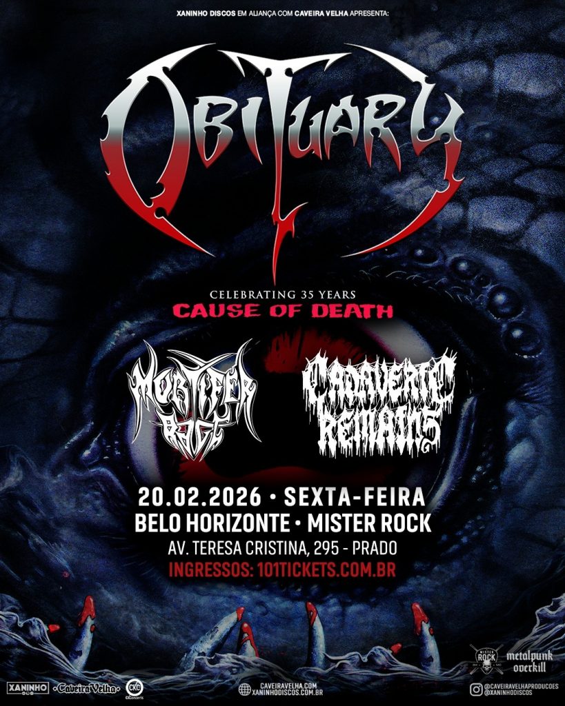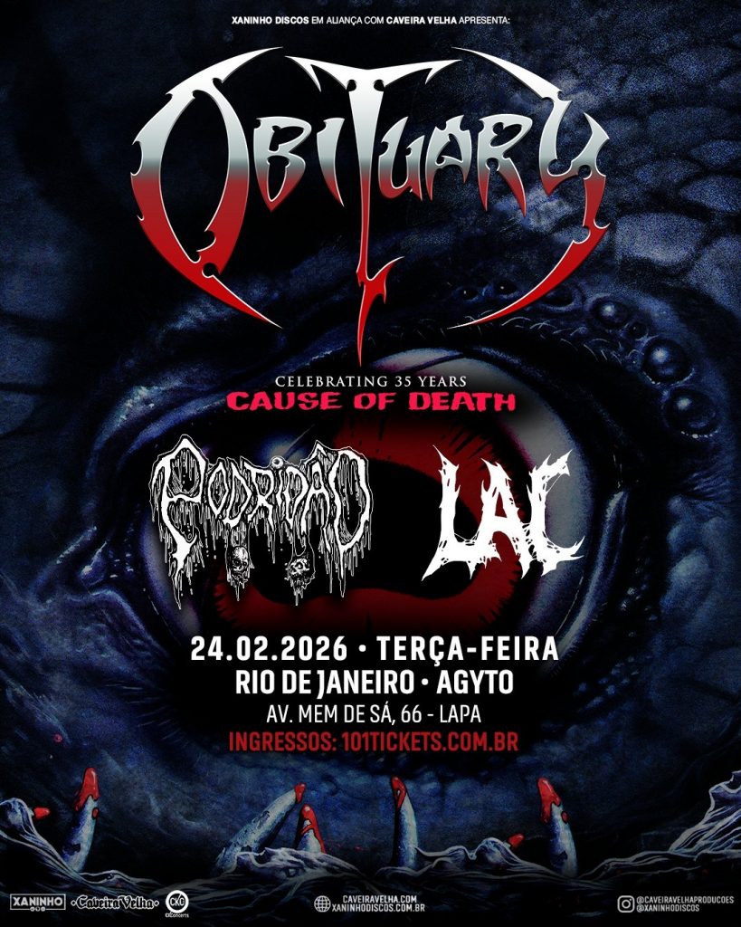 A banda norte-americana Obituary, um dos principais nomes do death metal clássico, retorna ao Brasil em fevereiro para uma série de shows em celebração aos 35 anos de ‘Cause of Death’, segundo álbum de estúdio e um dos registros mais influentes da história do death metal.