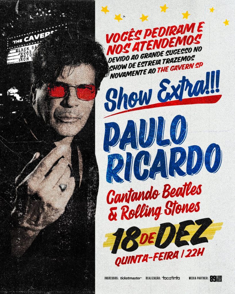 Paulo Ricardo volta ao palco do The Cavern Club São Paulo no dia 18 de dezembro para um show dedicado exclusivamente a clássicos dos Beatles e dos Rolling Stones. A apresentação atende aos pedidos do público após a inauguração da primeira filial oficial do clube inglês fora de Liverpool. Os ingressos estão à venda no site da Ticketmaster.