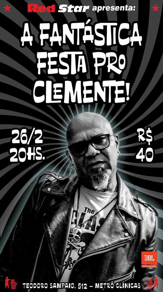 Nesta quinta-feira, 26 de fevereiro, a partir das 20h, a Red Star apresenta A Fantástica Festa Pro Clemente, um evento especial na Rua Teodoro Sampaio, 512, próximo ao metrô Clínicas, em São Paulo.