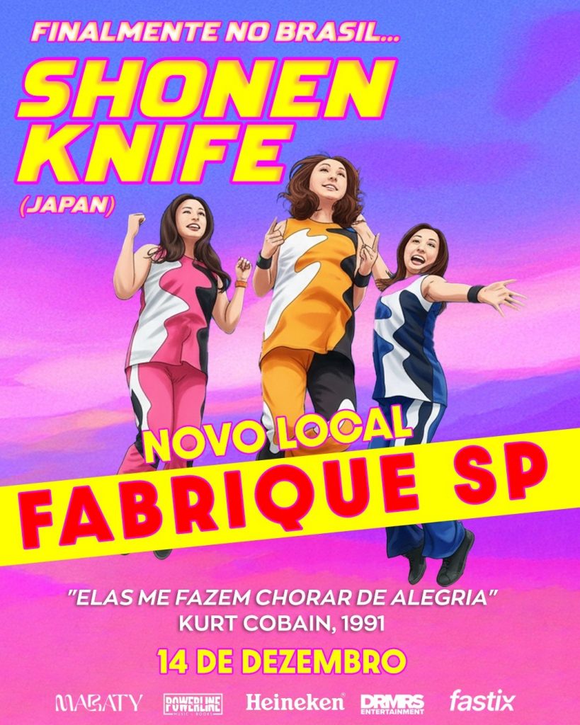 No dia 14 de dezembro, São Paulo (SP) recebe uma visita inédita e histórica: o lendário trio feminino japonês Shonen Knife traz seu pop punk, uma espécie de Ramones bubblegum que emocionou e alucinou Kurt Cobain. A apresentação agora será no Fabrique Club. O líder do Nirvana não apenas era fã declarado da banda de Osaka, como também as convidou pessoalmente para abrir os shows da turnê europeia do Nirvana em 1991. Será show único no Brasil com realização da Maraty.