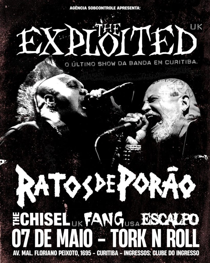 Mais três bandas completam o evento na capital paranaense com o The Exploited: The Chisel (Reino Unido), Fang (Estados Unidos) e a brasileira Escalpo.